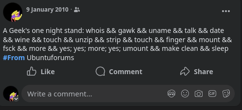 29 Oct 2025: I can’t find anymore the original post in UbuntuForums. This is the closest post that I found that is similar. Screenshot for posterity since Wayback Machine won’t save: